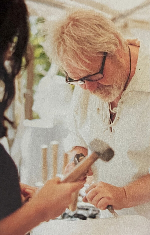 Bei Jörg Rohde-Heise können die Jugendlichen Wesen, Form und Struktur von Steinen kennenlernen. Mit Hammer und Meißel entstehen Skulpturen aus Sandstein oder Speckstein. In der BildhauerWerkstatt können aber auch aus gemörserten Steinresten Farbpulver hergestellt und Steine damit bemalt werden.